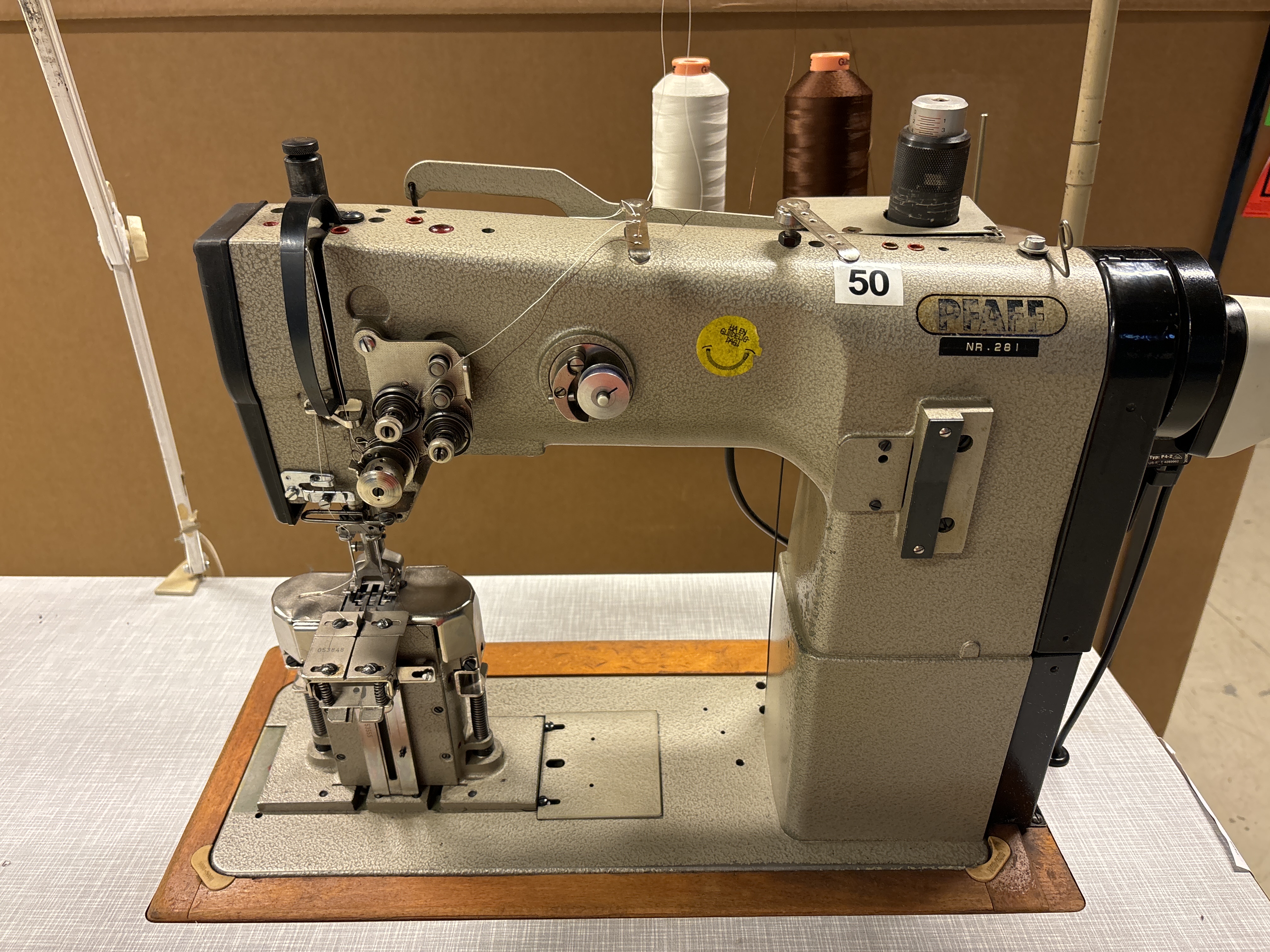 Double-needle postbed sewing machines with unison feed. For three-dimensional fabrics in the upholstery industry