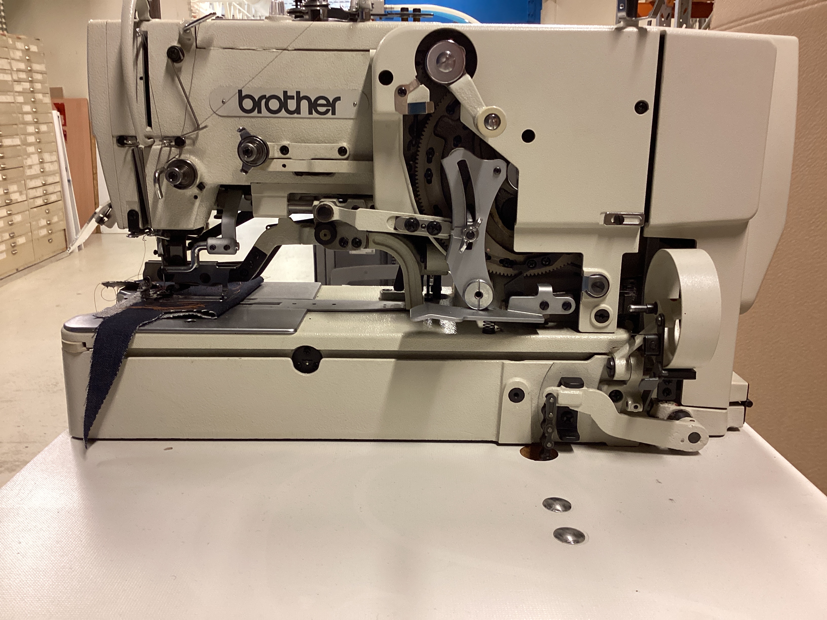 Løpenummer 1217 Serienummer H8511481 Status Skrotet Lagersted Lager Maskinegenskaper Maskintype Knapphull Transporttype Undertransport Stingtype Skyttelsøm Antall nåler 1 Tekniske data Motor Moretti clutchmotor 1400-3 El-fase 1F Trykkluft Ja